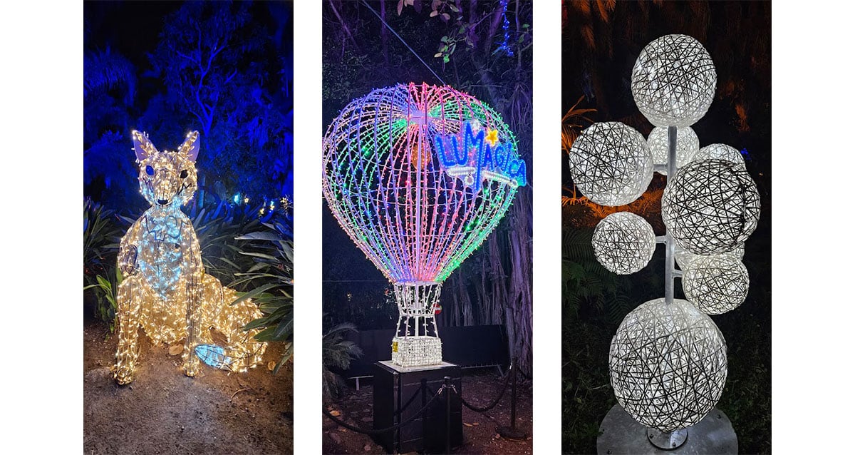 התערוכה היא חוויה שנבנתה סביב סיפור ומסלול חוויתי. גולת הכותרת היא השימוש בטכנולוגיית LED מתקדמת ליצירת מיצגי ענק תלת-ממדיים. בין המיצגים הבולטים ניתן למצוא הם דמויות ענק של חיות פרא, החל מאריות ופילים בגודל טבעי (ואף יותר), ועד ציפורים אקזוטיות שנוצותיהן מנצנצות באלפי נורות זעירות, וגם הקלאסיקה האהובה – מנהרת לבבות ארוכה המורכבות מקשתות אור מסתחררות, שיוצרות תחושה של הליכה בתוך חלום.